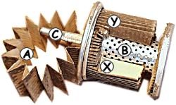 Dirty fuel flows in via D. The filtration element (A) cleans the fuel, and contamination-free